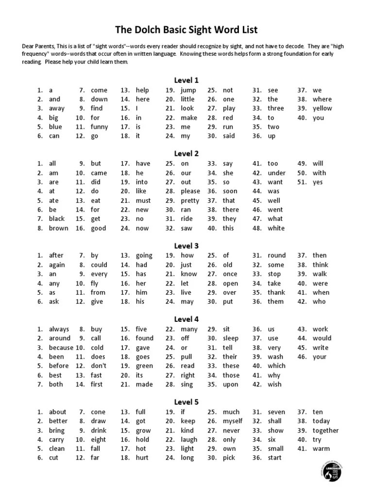 Dolch Sight Words List Have Fun Teaching